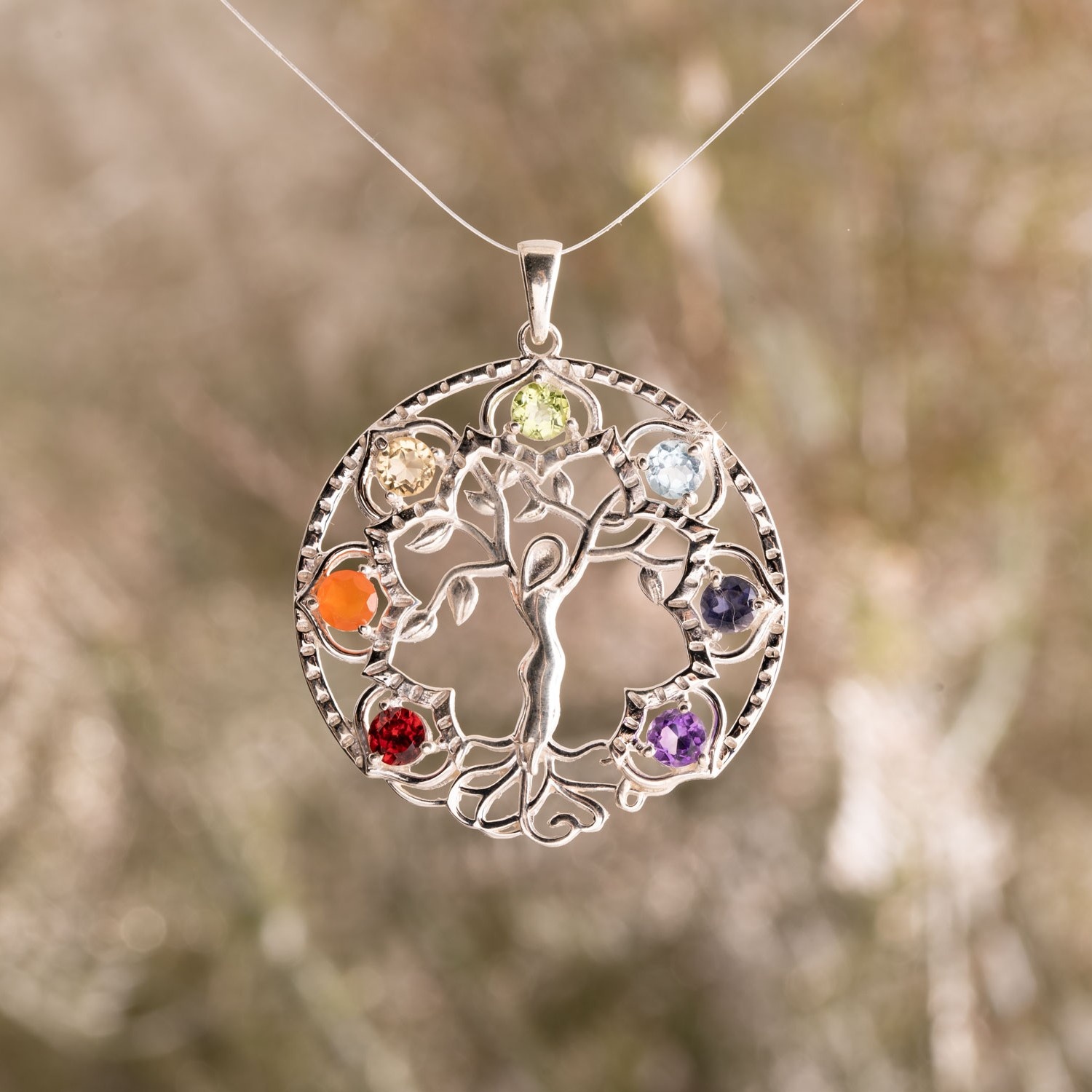Edle Ringe und Ohrringe mit Symbolen wie Blume des Lebens, Lebensbaum oder funkelnden Edelsteinen in den Chakra-Farben.